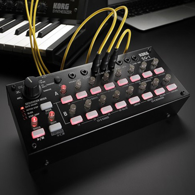 Get hands on and perform with with the Korg SQ-1 step sequencer. This compact instrument allows connection of many different devices to make use of its twin 8 step sequencers, ideal for live or studio performances. It makes use of CV Out/Gate connections along with MIDI Out/ USB MIDI, Sync In/Out and even a LitleBits output (for the Korg Littlebits synth). With all these connectors and the capability to use 2x 8 Step Sequencers, or combine it into 1 big 16 step sequencer, the SQ-1 offers a huge array of possibilities for creating and sequencing patterns.