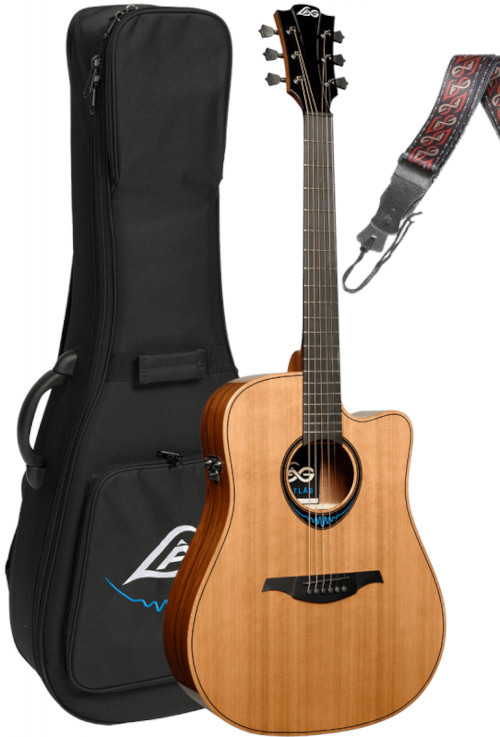 The LAG TBW2DCE dreadnought cutaway electro acoustic guitar is a striking example of innovative design and exquisite craftsmanship. This is a part of the Smart Guitar series from LAG, this instrument represents a harmonious blend of tradition and modernity, showcasing the elegance and quality that defines the brand. With its unique design features inspired by the beauty of Southern France, the TBW2DCE is more than just a guitar; it's a piece of art that combines tradition with innovation.