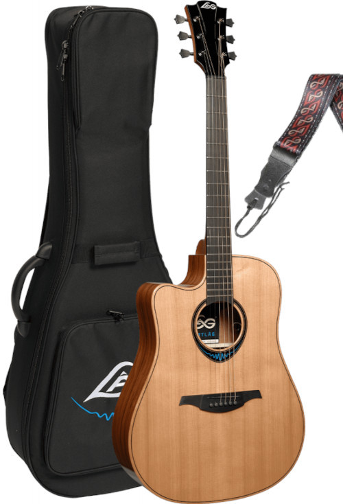 The LAG TLBW2DCE dreadnought cutaway electro acoustic guitar is a striking example of innovative design and exquisite craftsmanship. This is a part of the Smart Guitar series from LAG, this instrument represents a harmonious blend of tradition and modernity, showcasing the elegance and quality that defines the brand. With its unique design features inspired by the beauty of Southern France, the TBW2DCE is more than just a guitar; it's a piece of art that combines tradition with innovation.