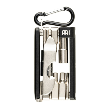 The Meinl Multi tool provides all essential tools that any touring drummer or drum tech might need on the road. The Meinl Drum Tech Multi Tool covers the essentials needed by drummers and drum techs. This portable multi-tool includes a drum key, flat screwdriver, Phillips screwdriver, socket wrench, hex drivers (2, 2.5, 3, 4, 5mm), and a bottle opener. If that isn't enough, it also attaches to any bag or case with the carabiner hook. This is ideal for when you are on the road and want to scrap the tool bag!
