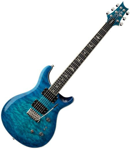 The SE Custom 24-08 Quilt brings expanded guitar tones to players in a classic package complete with a quilted maple veneer. The Custom 24-08 Quilt keeps all the foundational specs of the original Custom 24 while taking the Custom platform to new sonic territories. Like the Core Series instrument, the SE Custom 24-08 features two mini-toggle coil-tap switches that individually tap the humbuckers for single coils sounds and a total of eight pickup configurations. Classic design elements include a maple top, mahogany back, ebony fretboard, 24 frets, 25” scale length, bird inlays, dual humbuckers, signature headstock logo, and PRS patented tremolo.