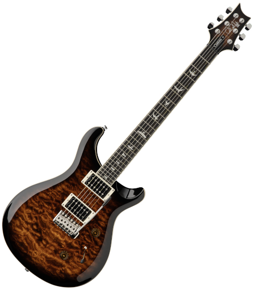 The Guitar is Made up of a mahogany body and neck that are glued to give you a fantastic resonant and full tone which gives the guitar a fantastic starting point on its tone. The neck has a rosewood fretboard, is 24 frets allowing you for that extra if it is needed, and spread across a 25" scale length for optimum comfort. The neck contour is a wide and thin profile which different from the other prs models giving you a losing grip for a faster and sleeker movement in your hand on the fretboard. To top it of the guitar has the Paul Reed Smith bird inlays up the neck, either a flamed or quilted maple top and bound body and fretboard to give the guitar the fantastic look it is known for.