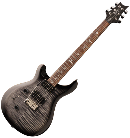 The Guitar is Made up of a mahogany body and neck that are glued to give you a fantastic resonant and full tone which gives the guitar a fantastic starting point on its tone. The neck has a rosewood freeboard, is 24 frets allowing you for that extra if it is needed, and spread across a 25" scale length for optimum comfort. The neck contour is a wide and thin profile which different from the other prs models giving you a losing grip for a faster and sleeker movement in your hand on the fretboard. To top it of the guitar has the Paul Reed Smith bird inlays up the neck, either a flamed or quilted maple top and bound body and fretboard to give the guitar the fantastic look it is known for.