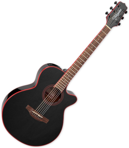 The Takamine GF49CE CB combines bold aesthetics with comfortable playability and versatile tone. Its spruce top oJers clarity and projection, while the sapele back and sides add warmth and depth, making it a great choice for both strummers and fingerstyle players. The FX cutaway body ensures easy upper-fret access, enhancing playability for lead work and chord melodies alike.