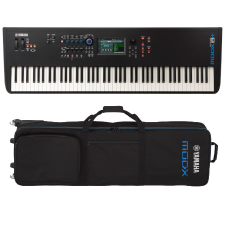 Protect your new investment with this money saving bundle. The MODX8 official case is the perfect fit and padded protection for the MODX8 Plus synth. It has wheels for easy transport and has MODX8 emblazoned on the outside.